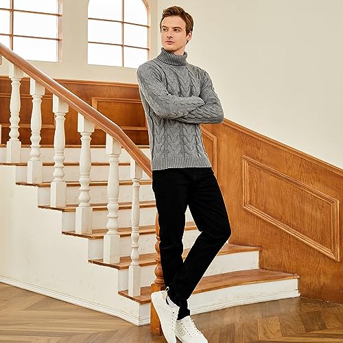 • Classic and timeless, The men's turtleneck sweater is a wardrobe staple that never goes out of style. With its long sleeve cable knitted pattern design, this men turtleneck sweater exudes a classic and timeless appeal, making it a versatile piece to wear for many winters to come.