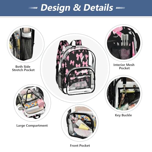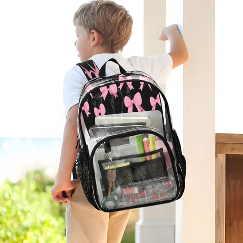 More information about Clear Backpack for School Pink Bow Black Background Pattern Transparent Bookbag for Girls See Through PVC Boy Backpacks