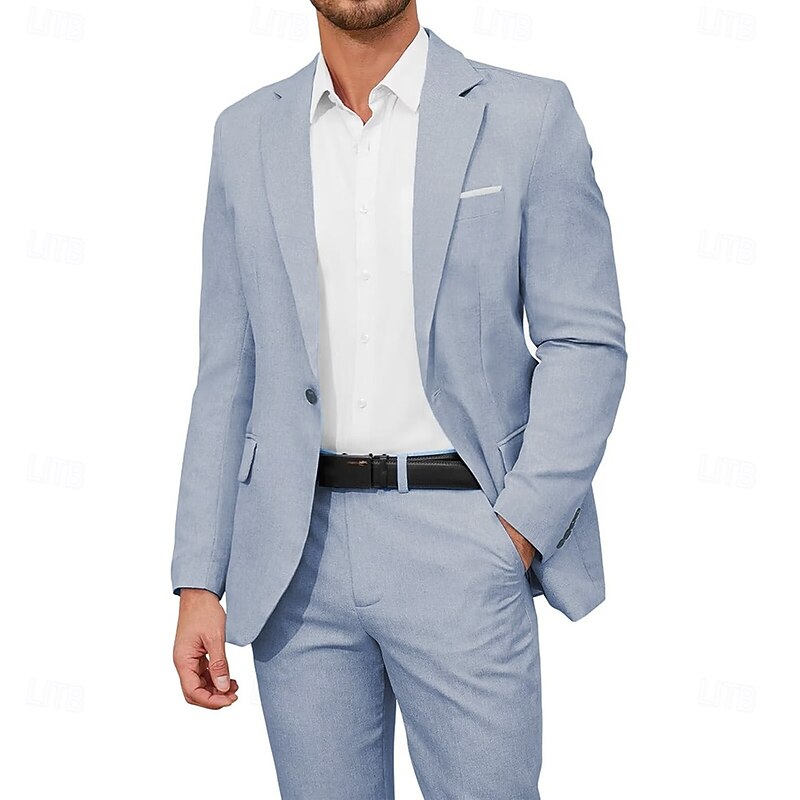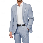 More information about Men's Business Casual Linen Suits Notch Lapel Dusty Blue Beige Formal Solid Colored Standard Fit 2 Piece Single Breasted One-button