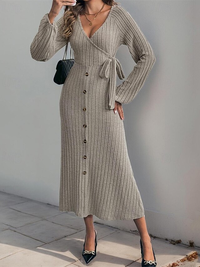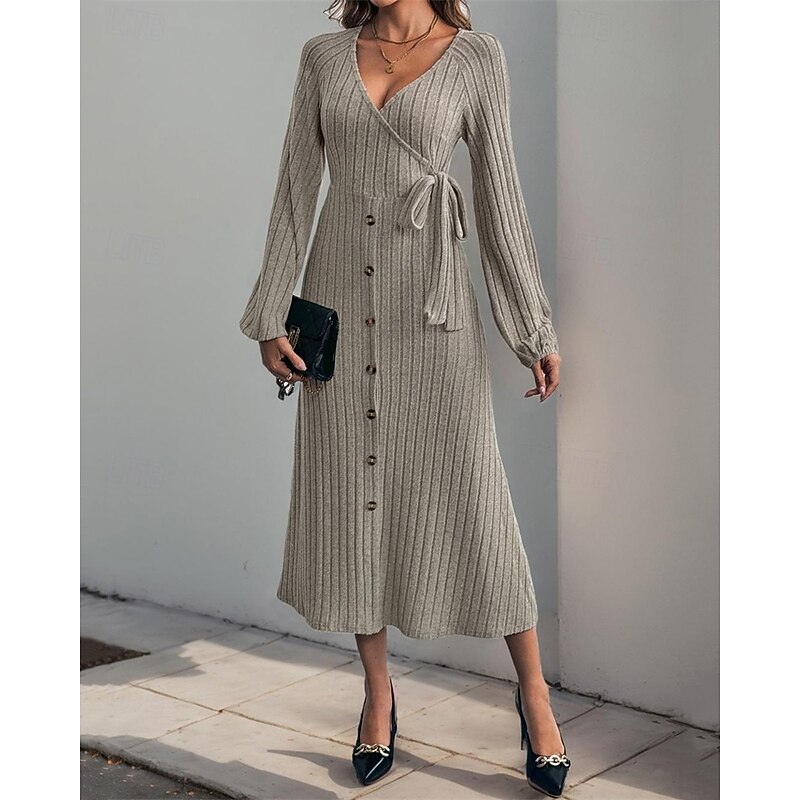 More information about Women's Midi Dress Knit Dress Casual Dress Fashion Modern Daily Date Weekend Regular Fit Plain Long Sleeve V Neck Khaki Fall Winter
