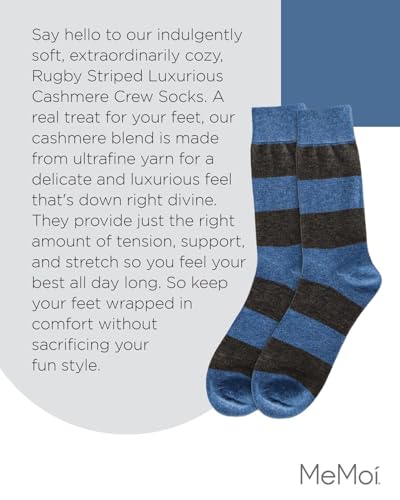 HOT ! MeMoi Men's Rugby Striped Luxuriously Soft Cashmere Blend Crew Socks Med Denim Heather 10-13