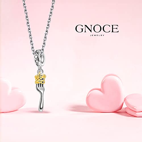 More information about GNOCE Hamburger Embraces Heart Gemstone Charm Bead Coffee Cup Charms 925 Sterling Silver Food Charm Fits Bracelet/Necklace For Women Mother's Day Gift (Fork & Pasta)
