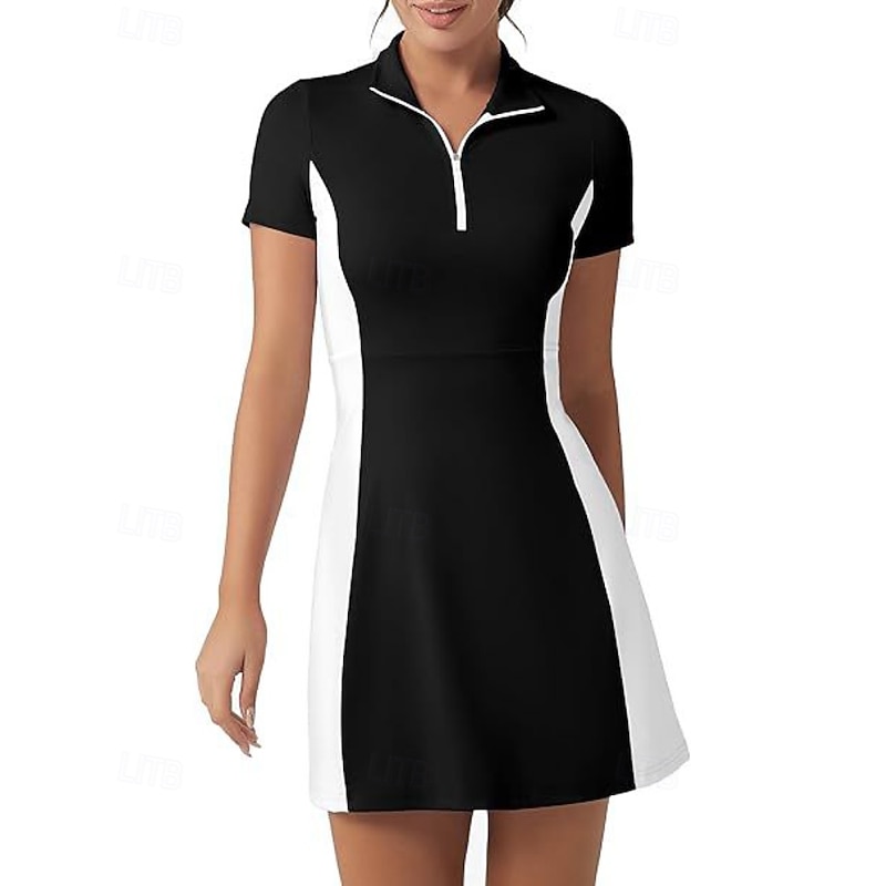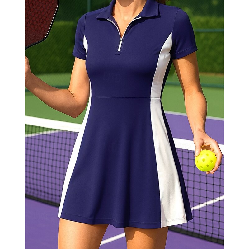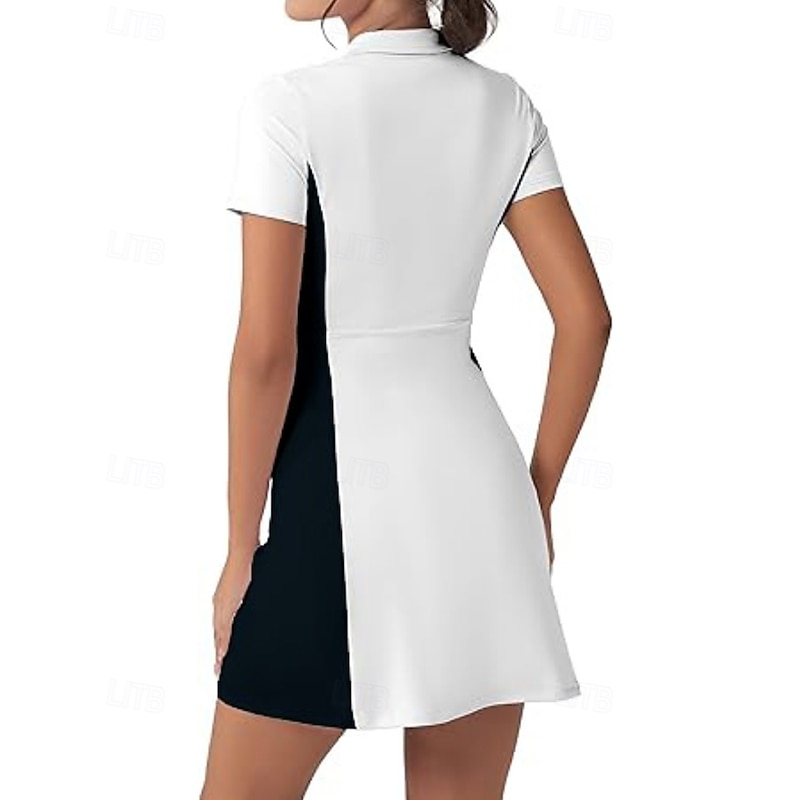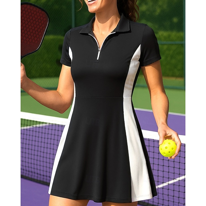 $23.99 - Women's Patchwork Tennis Dress Short Sleeve Zipper Pocket Contrast Binding Breathable Tennis Pickleball Polo Collar Dress Black White Dark Navy Tennis Clothing 2025. Shop for cheap Women's Tennis Dress online? Buy at lightinthebox.com on sale today!