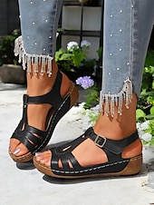 More information about Brown T-Strap Buckle Flat Sandals for Women - Comfort Faux Leathe Sandals for Everyday Wear & Outdoor Activities