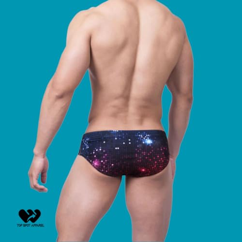 HOT ! Men's Disco Ball Padded Enhancing Swim Briefs, Front Removable Pad and Push-Up Cup
