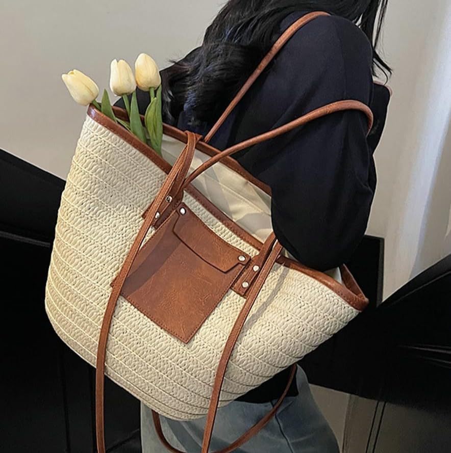 Large Rattan Woven Tote, Summer Vacation Shoulder Purse, Beach Crossbody Clutch 1