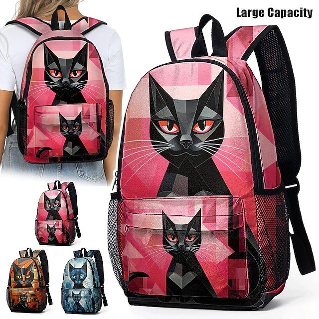 Cute Black Cat Backpack for Girls – Trendy Animal Print School Bag with Large Capacity and Fun Design for Teens 16