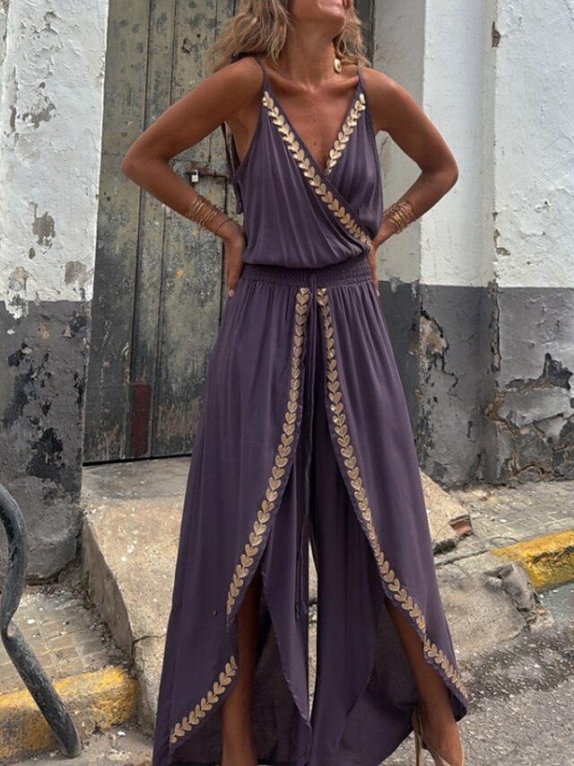 More information about Women's Normal Jumpsuit Streetwear Color Block Sleeveless V Neck Patchwork Street Daily Regular Fit Purple Summer
