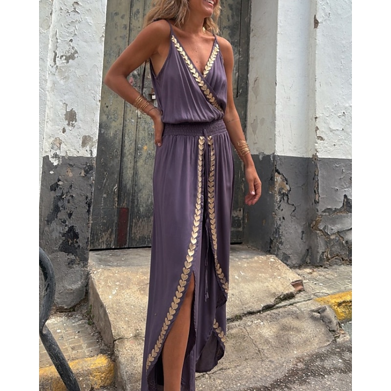 HOT ! Women's Normal Jumpsuit Streetwear Color Block Sleeveless V Neck Patchwork Street Daily Regular Fit Purple Summer