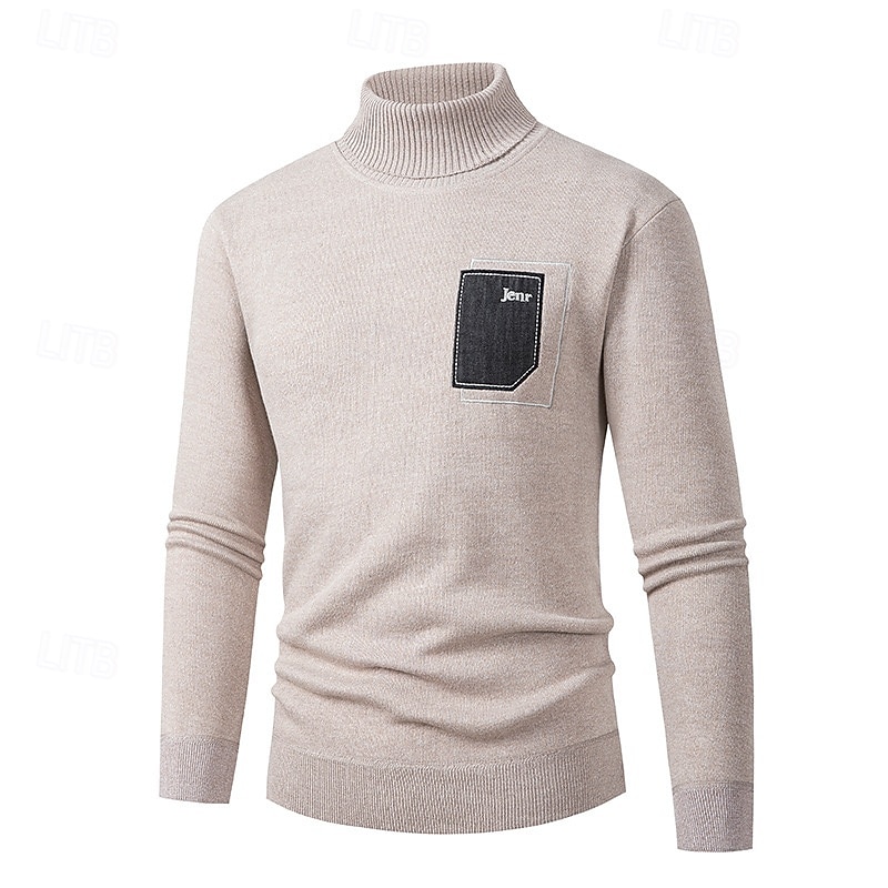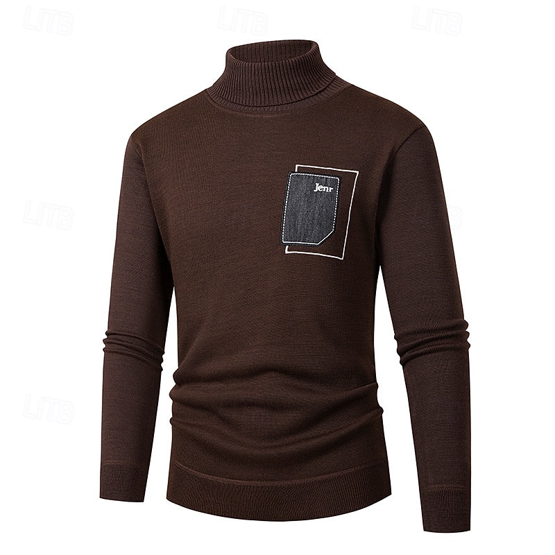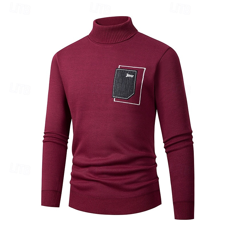 More information about Men's Turtleneck Sweater Pullover Sweater Jumper Ribbed Knit Patchwork Pocket Solid Color Turtleneck Elegant Vintage Formal Work Clothing Apparel Bishop Sleeve Fall Winter Wine Black M L XL