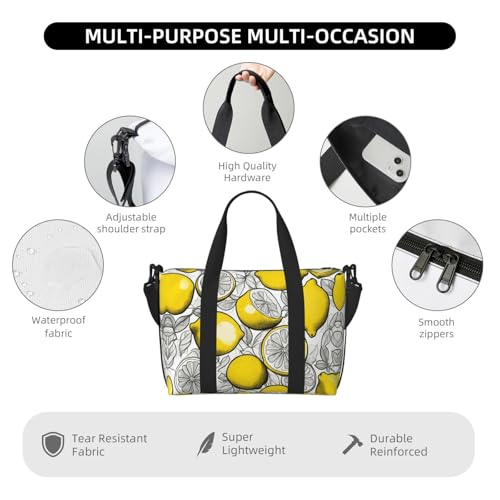 • Multiple Functions :Lemon Fruit Pattern Print Travel Duffle Bag Is Your Perfect And Reliable Companion For Sports Or Travel. Use It As A Duffle Bag For Travel, Yoga Bag, Sports Gym Bag, Overnight Bag, Weekender Bag, Maternity Bag, Mommy Bag, Hospital Bag, Carry On Bag, And More. Perfect For Various Occasions, Meet Your Various Needs At One Time! It Is Perfect For Workout, Yoga, Tennis, Basketball, Swimming, Camping And Many Outdoor Activities.
