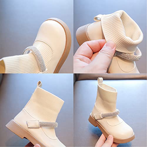 Booties 10 Girls Shoes Leather Boots Shoes Waterproof Leather Short Boots Non Slip Breathable Nude Princess Shoes (Beige, 11-11.5 Years) 7
