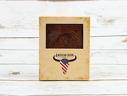 HOT ! American Bison RFID Wallet for Men – Hand-Tooled Floral Cowhide Leather Bifold Wallet with Gift Box (Light Brown)