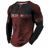More information about Men's Graphic Color Block Bohemian Henley Shirt Tee Long Sleeve 3D Print Fashion Designer Comfortable Outdoor Casual Daily Spring & Fall Blue Red Brown Green Henley Henley T-Shirt