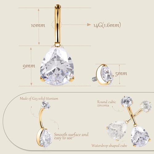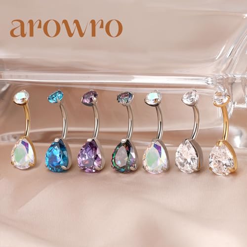 AROWRO Gold Belly Button Ring G23 Titanium Hypoallergenic 14G belly ring for Women Men Teardrop Navel Piercing Jewelry 10mm Barbell With Cubic Zircon 6