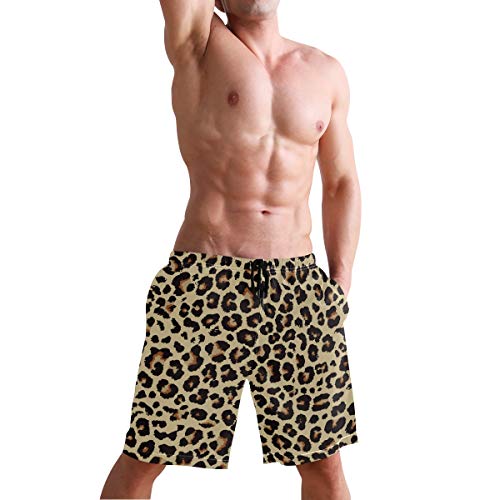 HOT ! Mens Swim Trunks Leopard Beach Board Shorts Quick Dry Swim Shorts with Pockets