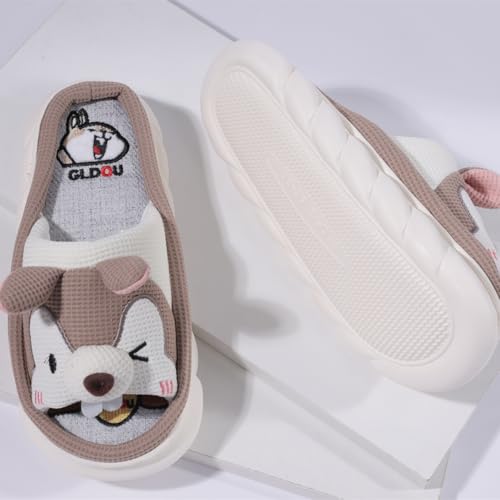 • 【Breathable & lightweight Shoes】Cartoon Animal slippers made of soft and breathable linen fabric keeps your feet dry and comfortable. The soft slip are quiet on floor as they are very lightweight. Perfect cozy slipper to slide on,keep you safe on wet tiles. High density memory foam insole relaxes your foot after a long day walk.