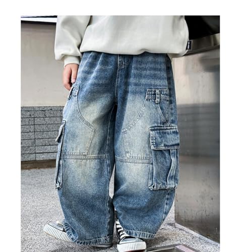 Baggy Jeans for Boys Kids Teens Straight Wide Leg Jeans Summer Casual Elastic Waist Loose Fit Y2K Streetwear Denim Pants 4