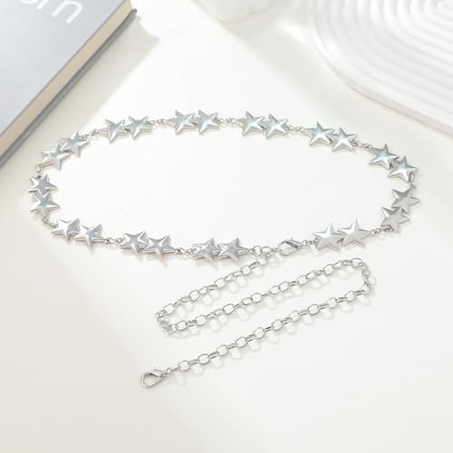 Silver Chain Belts for Women Fashion Metal Punk Rock Star Chain Belt for Dresses Jeans Y2k Emo Waist Body Jewelry 2
