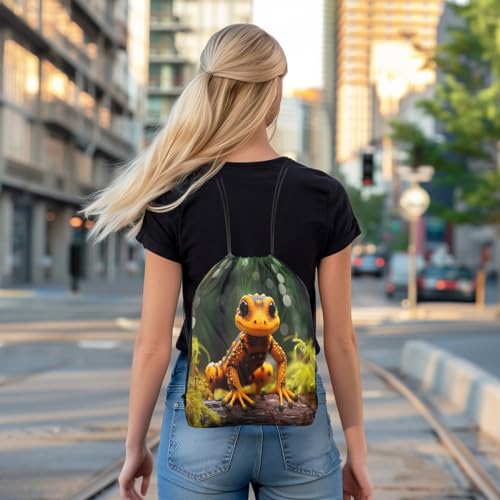 Erosebridal 3D Lizard Print Drawstring Backpack,Reptile Animal Drawstring Bags 13x15.7,Black Yellow Wildlife Draw String Back Bag Foldable,Woodland Plants String Backpack for Traveling 6