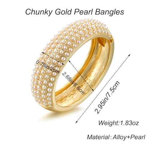 • Gold Chunky Bracelets for Women: gold pearl bangles are the perfect jewelry for any occasion. Whether it's a birthday, anniversary, or just a special treat for yourself,this chunky arm cuff bracelet is sure to be loved and cherished.