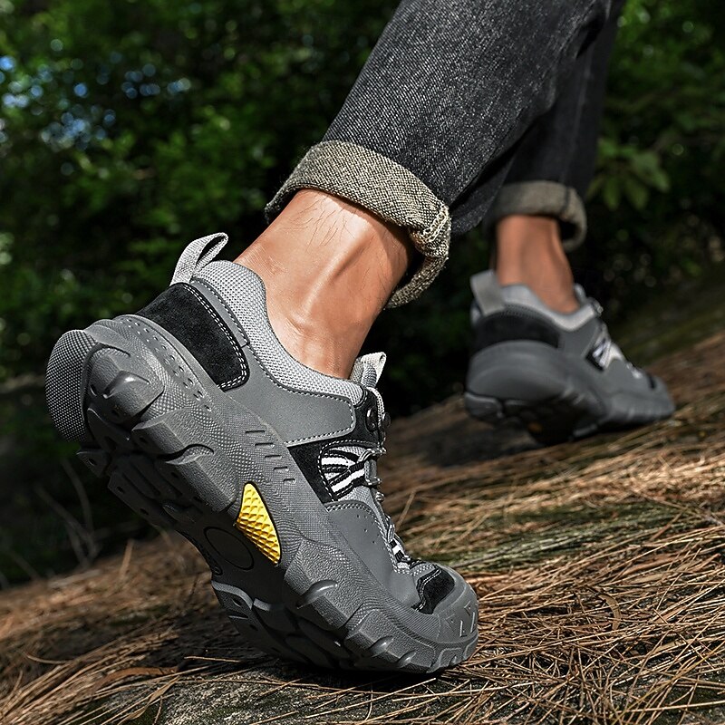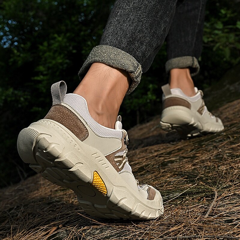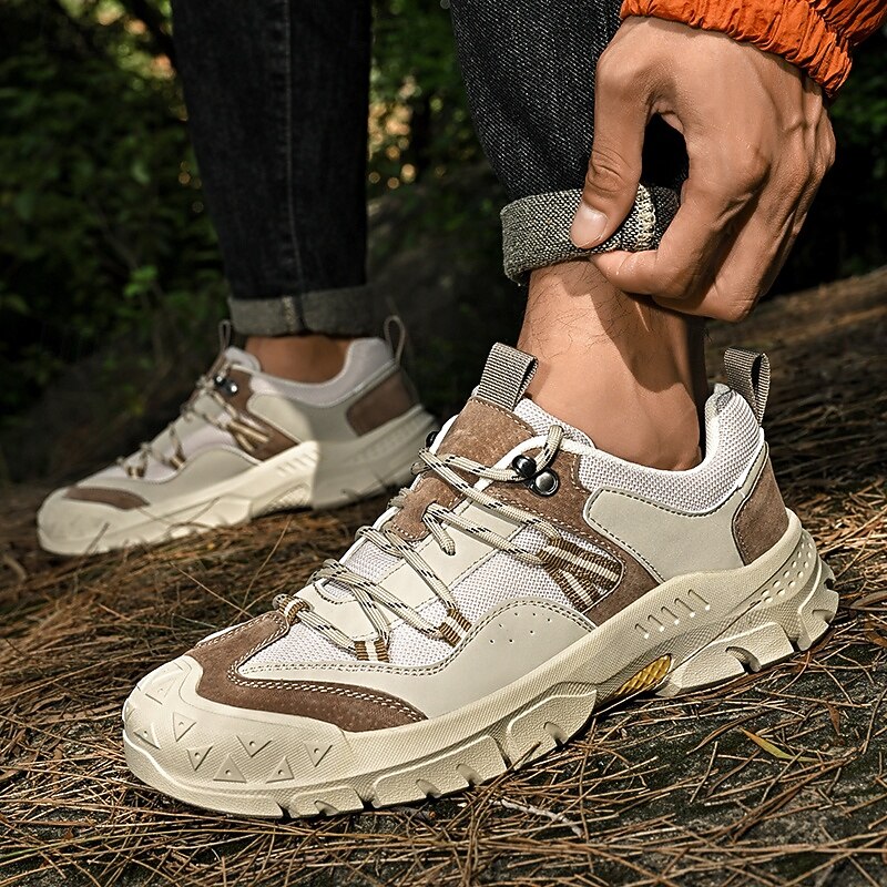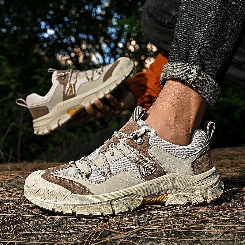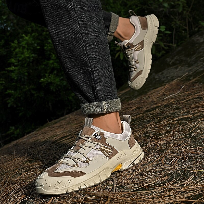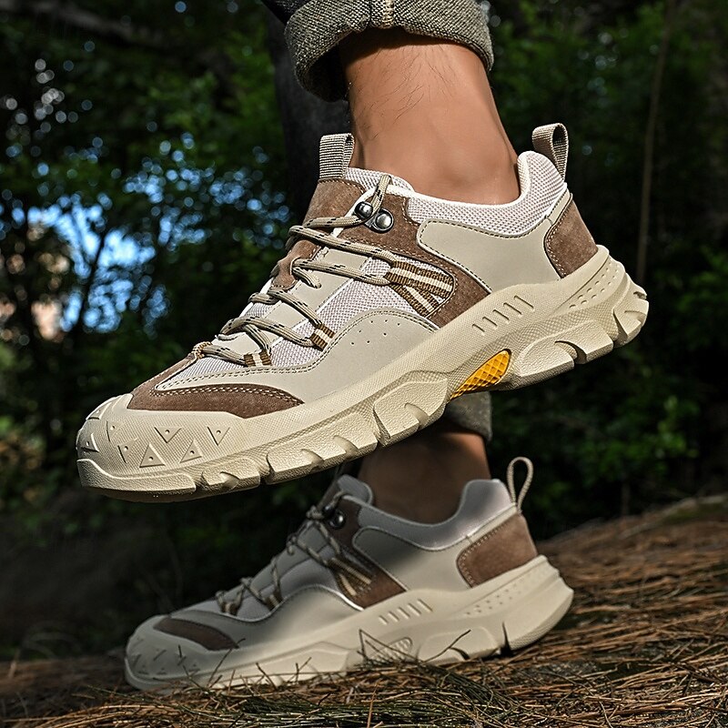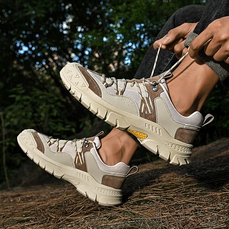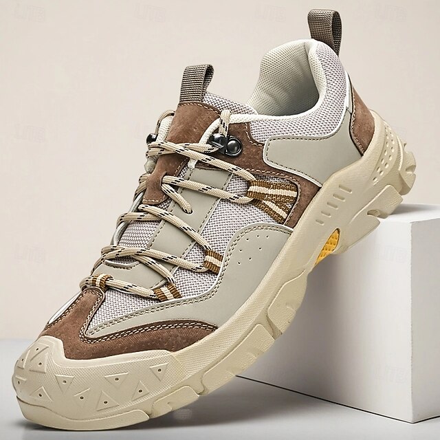 HOT ! Men's Grey and Brown Multi-Use Sneakers – Versatile Hiking Shoes with Waterproof Design for Sports, Travel and Outdoor Activities