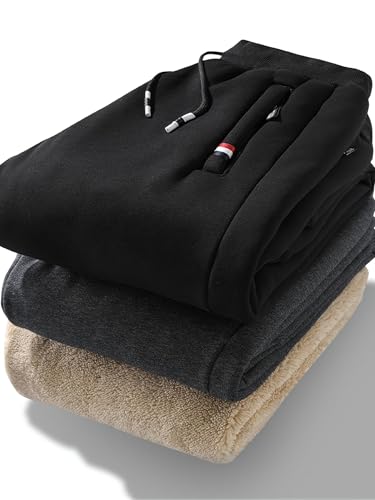 More information about 3pcs Men's Print Solid Color Fleece Lining Sweatpants with Drawstrings, Casual Warm Thickened Windproof Trousers