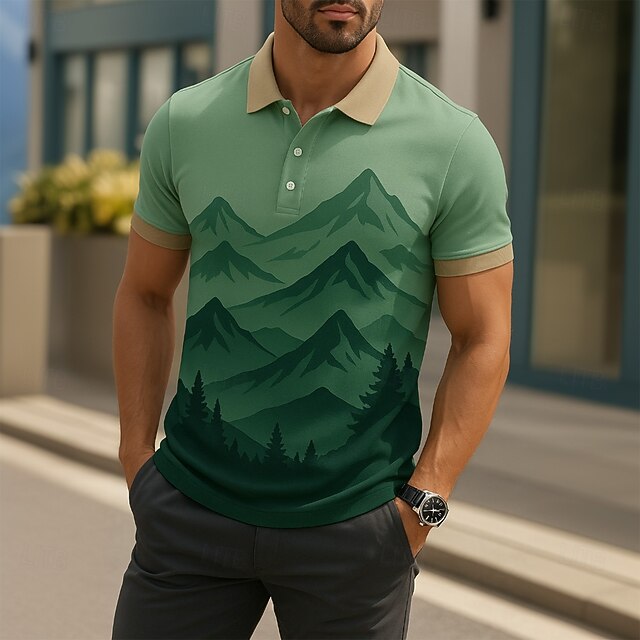 Men's Mountain Polo Short Sleeve Polo Shirts Collared Shirts Casual School Outdoor Daily Wear 3D Print Summer Purple Green Gray 5