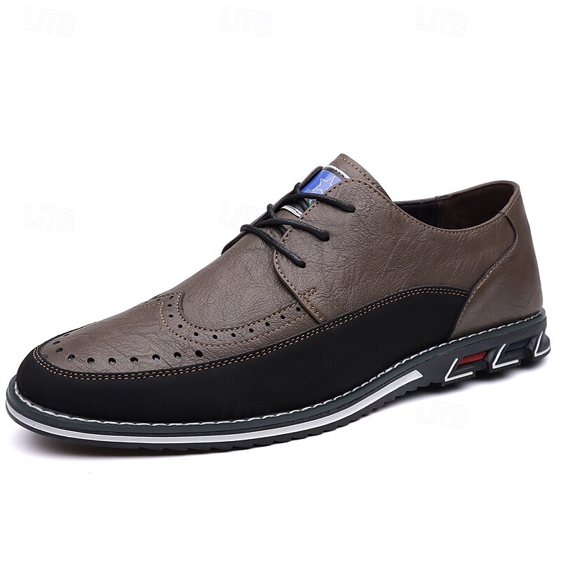 HOT ! Men's Two-Tone Faux Leather Oxford Shoes – Lace-Up Design with Brogue Detailing, Stylish and Comfortable for Casual and Formal Occasions