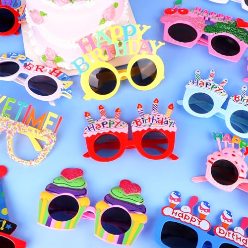 • Package Includes: You will get 16 pairs of birthday party glasses in different designs, suitable for kids and adults, birthday glasses are abundant in quantity and bright colors are enough to meet your daily use and replacement needs.