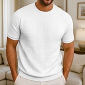 Men's Waffle Tee T Shirt Tee Short Sleeve Shirt Short Sleeve Crew Neck Summer All Seasons Plain Fashion Designer Basic Jacquard Vacation Street Casual Black White Top Tee for Men 6