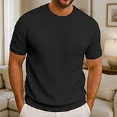 More information about Men's Waffle Tee T Shirt Tee Short Sleeve Shirt Short Sleeve Crew Neck Summer All Seasons Plain Fashion Designer Basic Jacquard Vacation Street Casual Black White Top Tee for Men