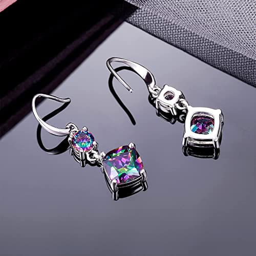 • >The women drop earrings feature 5mm round and 8mm Cushion rainbow CZ stone, so sparkly and stunning earrings with luxurious looks for any occasions.
