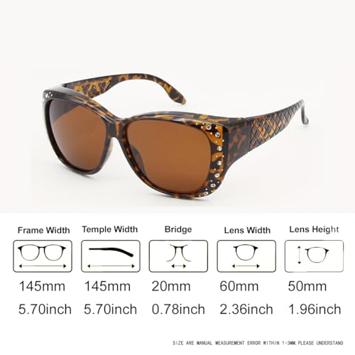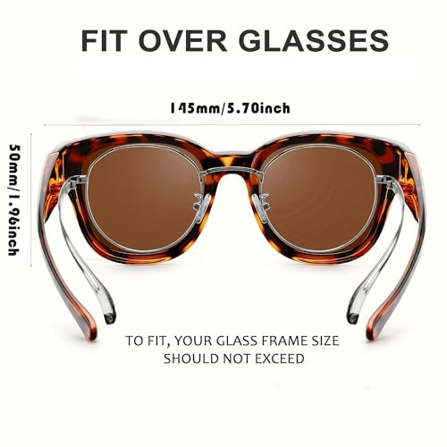 • VERSATILE FIT: Oversized cat-eye frame designed to fit over prescription glasses, with dimensions of 5.70 inches frame width and 2.36 inches lens width, Please confirmt the prescription is smaller this sunglasses