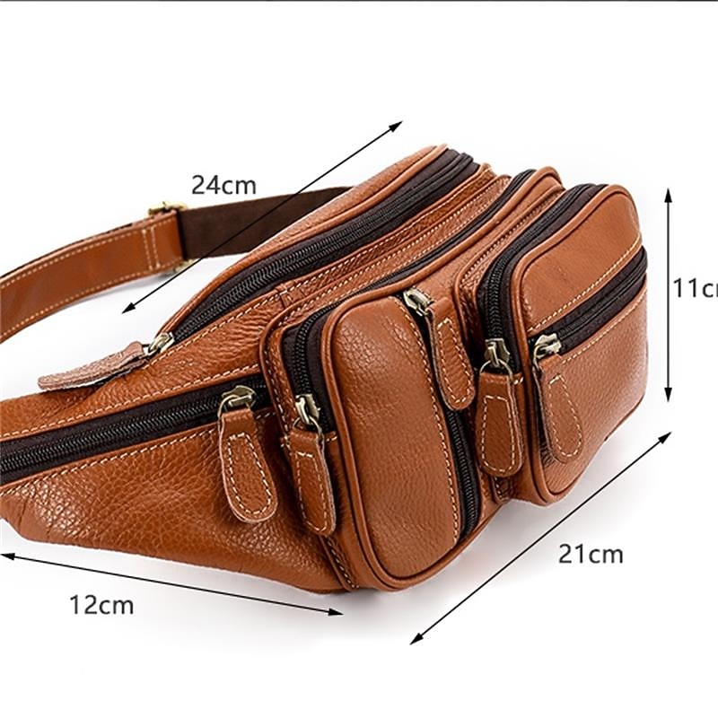 Men's Black Leather Waist Bag – Multi-Pocket Fanny Pack for Travel, Outdoor Activities, and Everyday Use 10