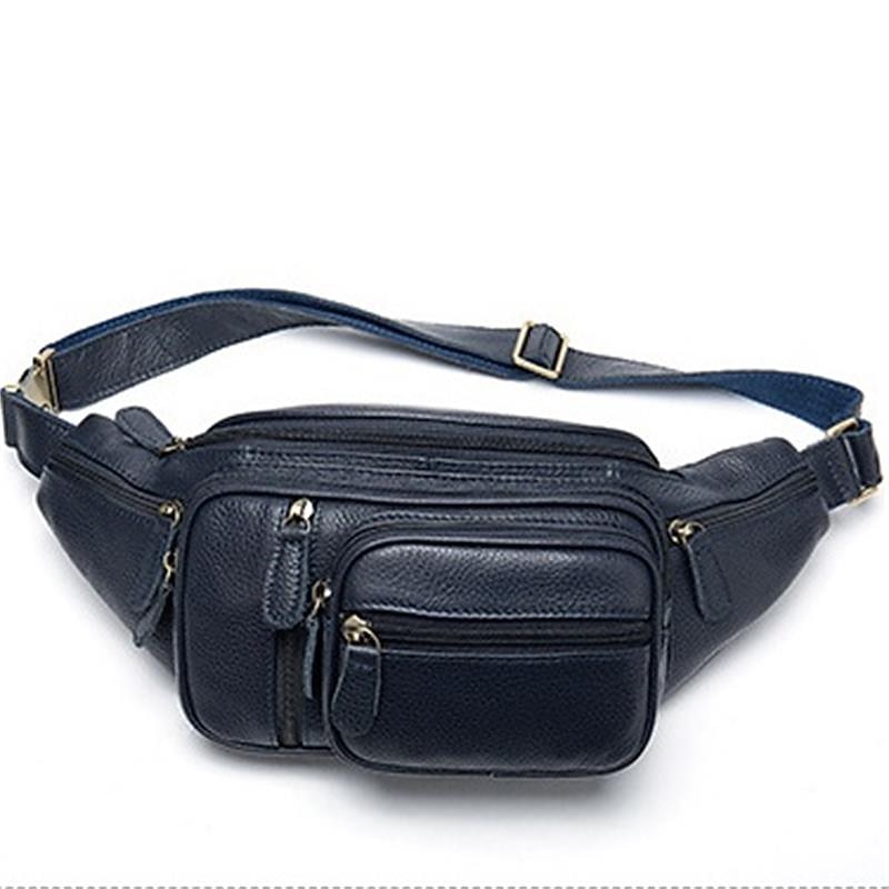 HOT ! Men's Black Leather Waist Bag – Multi-Pocket Fanny Pack for Travel, Outdoor Activities, and Everyday Use