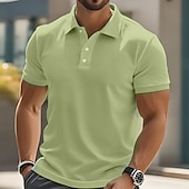 More information about Men's Solid Color Plain Golf Shirt Short Sleeve Casual Daily Athleisure Casual Daily Buttons Summer Black Pink Navy Blue