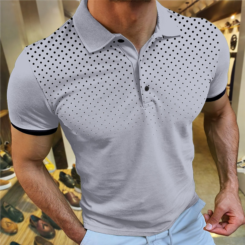 HOT ! Men's Sport Polo Polo Shirt Casual Holiday Lapel Short Sleeve Fashion Basic Polka Dot Button Summer Regular Fit Wine White Navy Blue Orange Gray Sport Polo