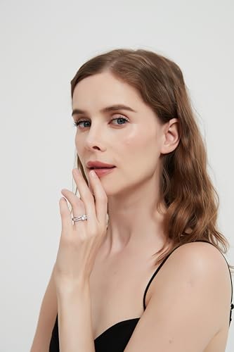 THELANDA Genuine Moissanite or Simulated 1CT Round Brilliant Cut Diamond Sterling Silver Crossover Infinity Promise Ring Engagement Ring For Her 2