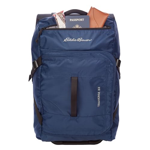 Eddie Bauer Traverse Luggage | Roller Wheels | Telescoping Handle | Travel | Vacation | Ripstop Nylon - Medium Indigo, 22" 6