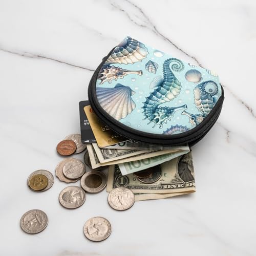 Portable Coin Purse Watercolor-Seahorse-Seashells Mini Zippered Money Pouch Card Holder 5