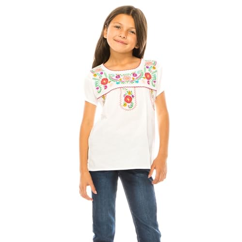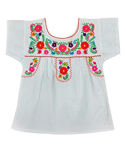 Traditional Puebla Mexican Youth Girl Embroidered Blouse size 4-14 4