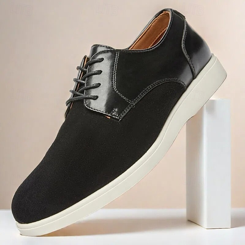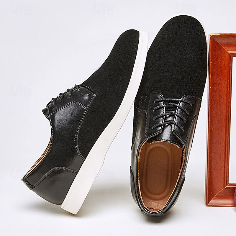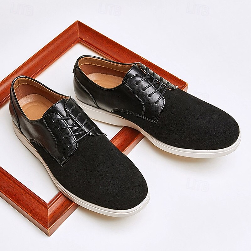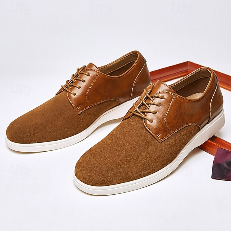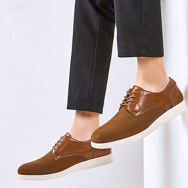 More information about Men's Brown Lace-Up Casual Shoes with Suede and Patent Leather Upper, Comfortable Footwear for Daily Wea