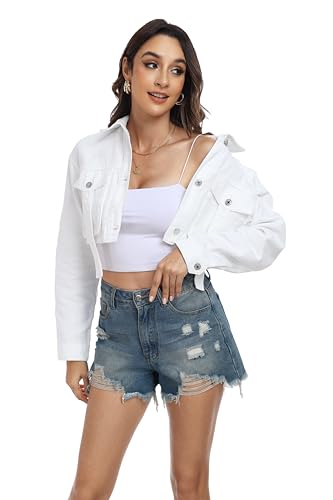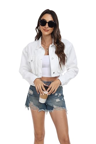 andy & natalie Womens Jean Jacket Cropped Fashion Button Down Denim Jackets Short Shacket Outfit 6