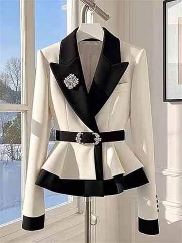 More information about Women's Suit Blazer Notch Lapel Contrast Sash Belted Jacket for Spring Fall Office Work Formal Casual Outfits