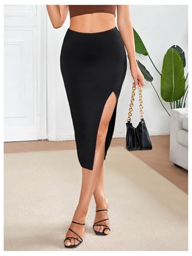 Women High Waisted Bodycon Skirt Split Thigh Dressy Midi Pencil Skirts 4