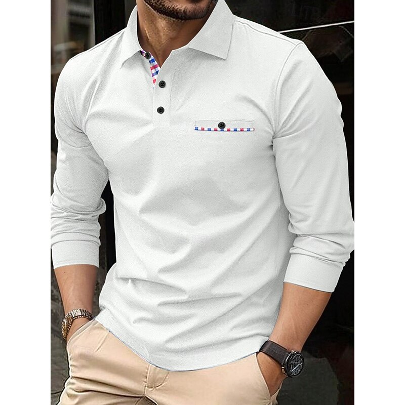 HOT ! Men's Business Polo Golf Shirt Street Casual Lapel Long Sleeve Basic Modern Plain Buttons Spring Fall All Seasons Regular Fit Black White Blue Navy Blue Business Polo