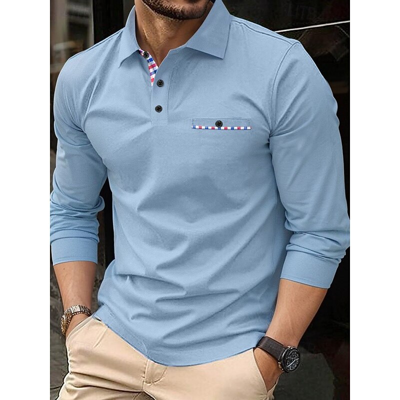 Men's Business Polo Golf Shirt Street Casual Lapel Long Sleeve Basic Modern Plain Buttons Spring Fall All Seasons Regular Fit Black White Blue Navy Blue Business Polo 11