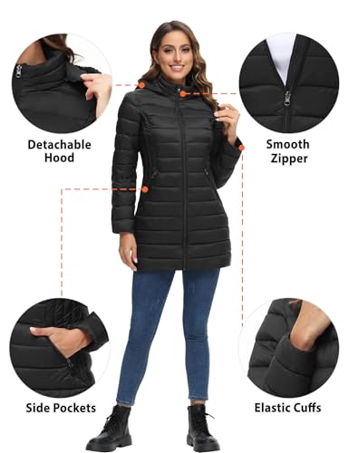 ROYAL MATRIX Women's Packable Puffer Jacket Lightweight Puffer Coat with Hood Long Winter Warm Travel Puffer Jackets 6