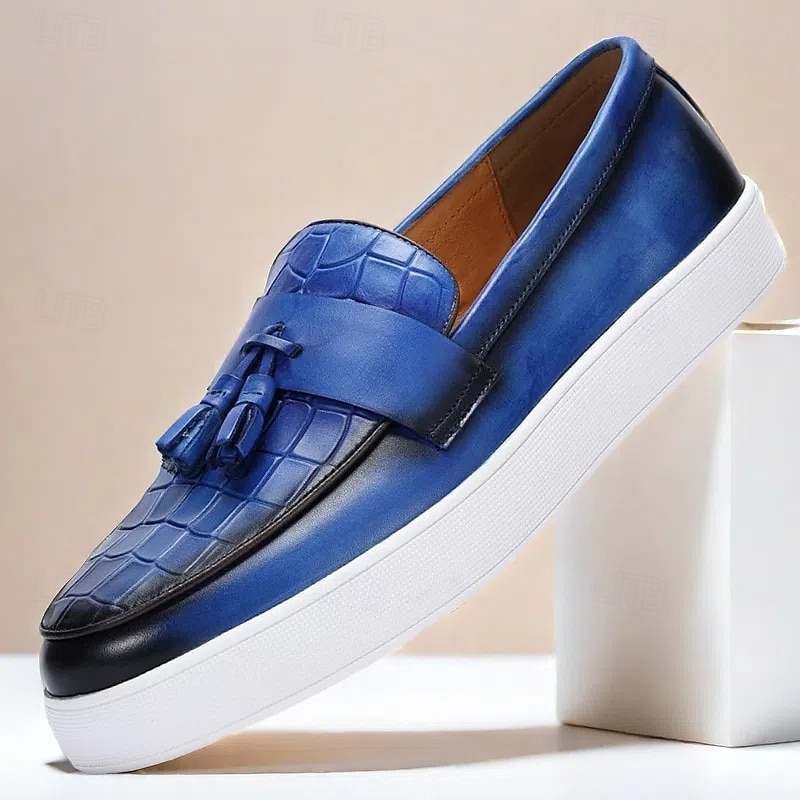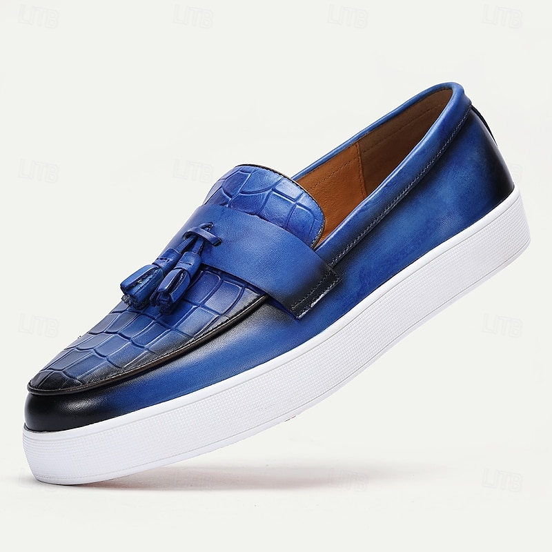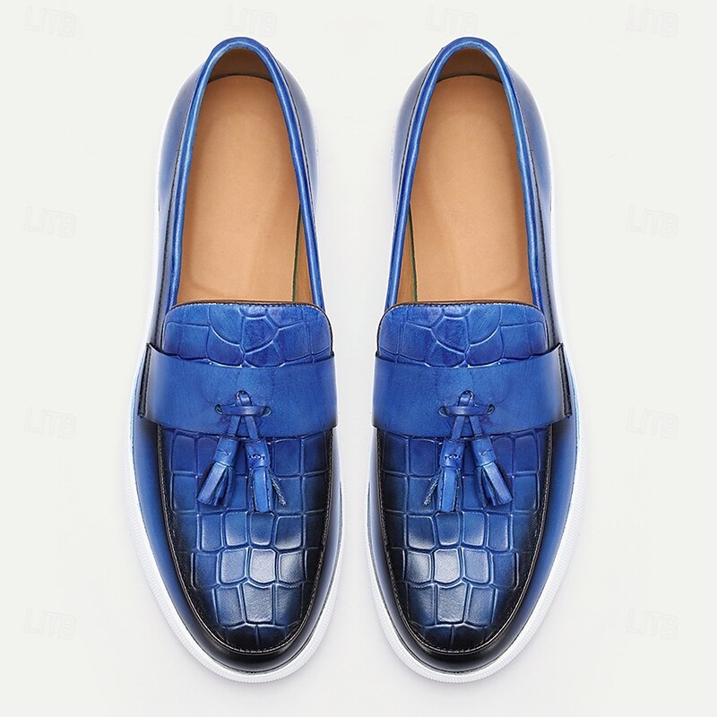 More information about Blue Leather Loafers with Crocodile Pattern and Tassel for Men | Versatile for Casual and Business Casual